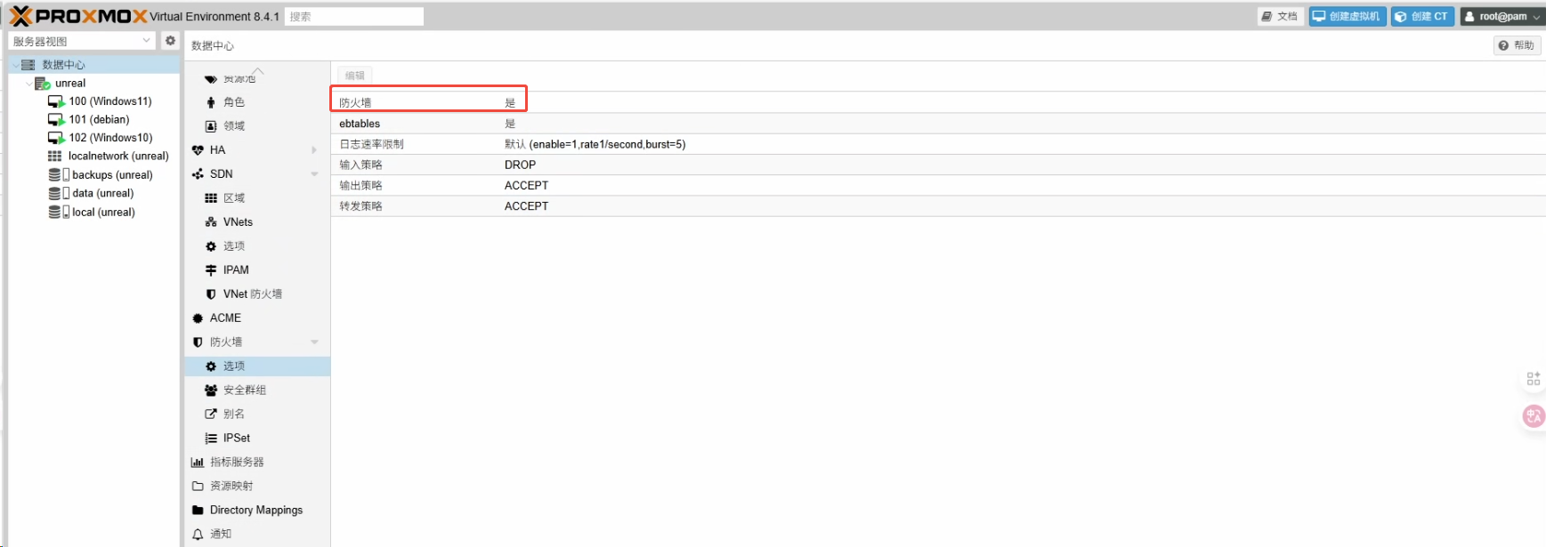 首先,我们需要激活PVE的防火墙功能。